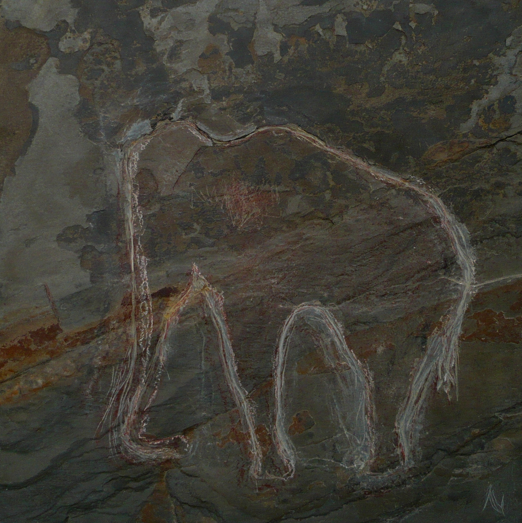 Elephant, El Pindal Cave Posted by npaul on December 31, 2025 Conte on stone tile (2015) Size: 6″ x 6″ x 0.25″ Related